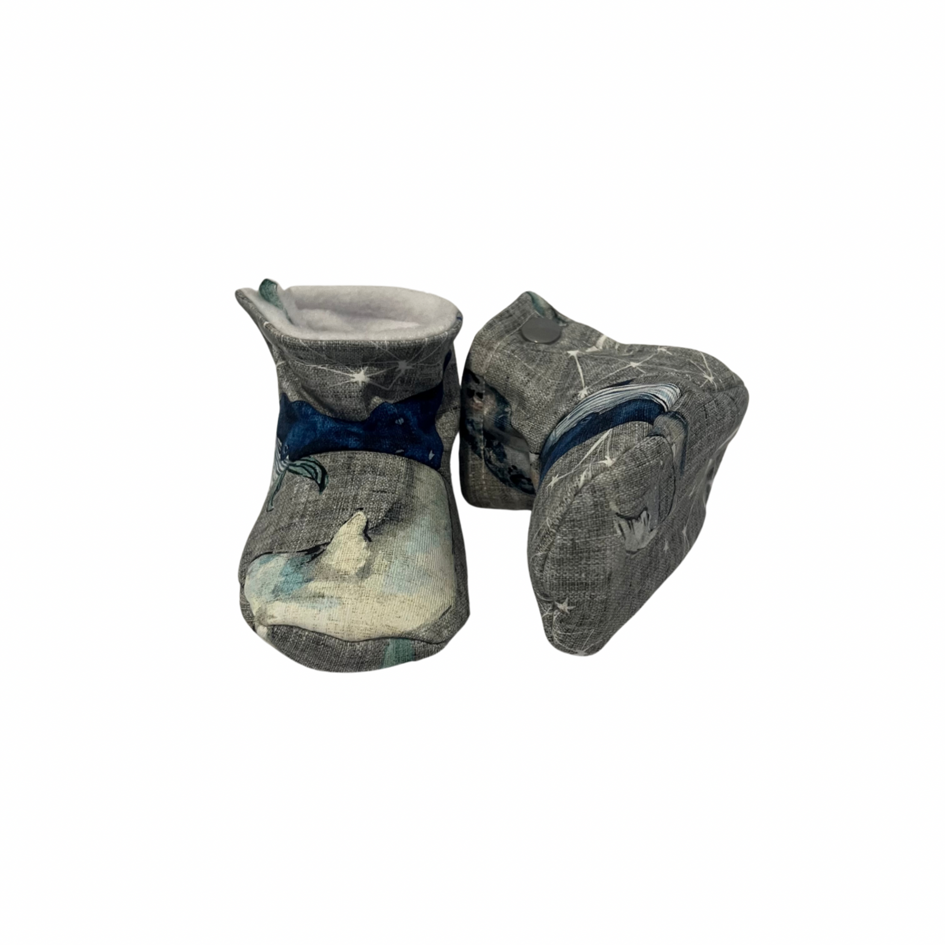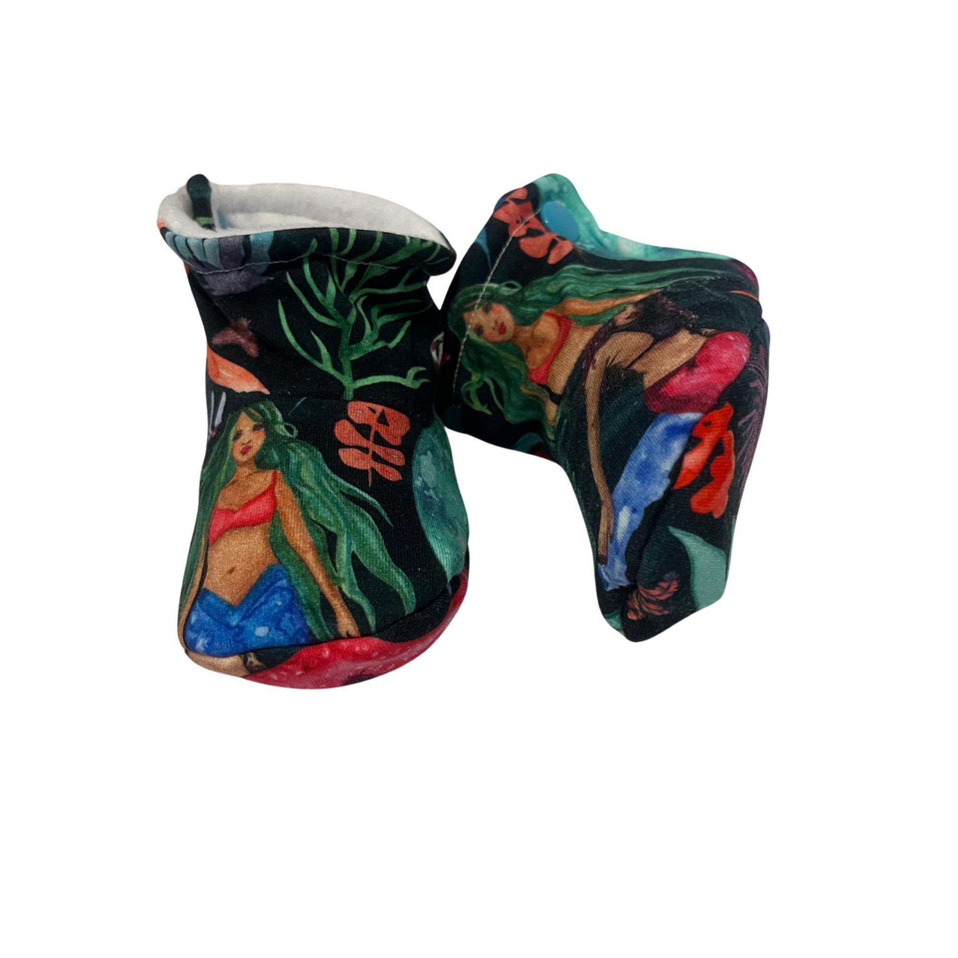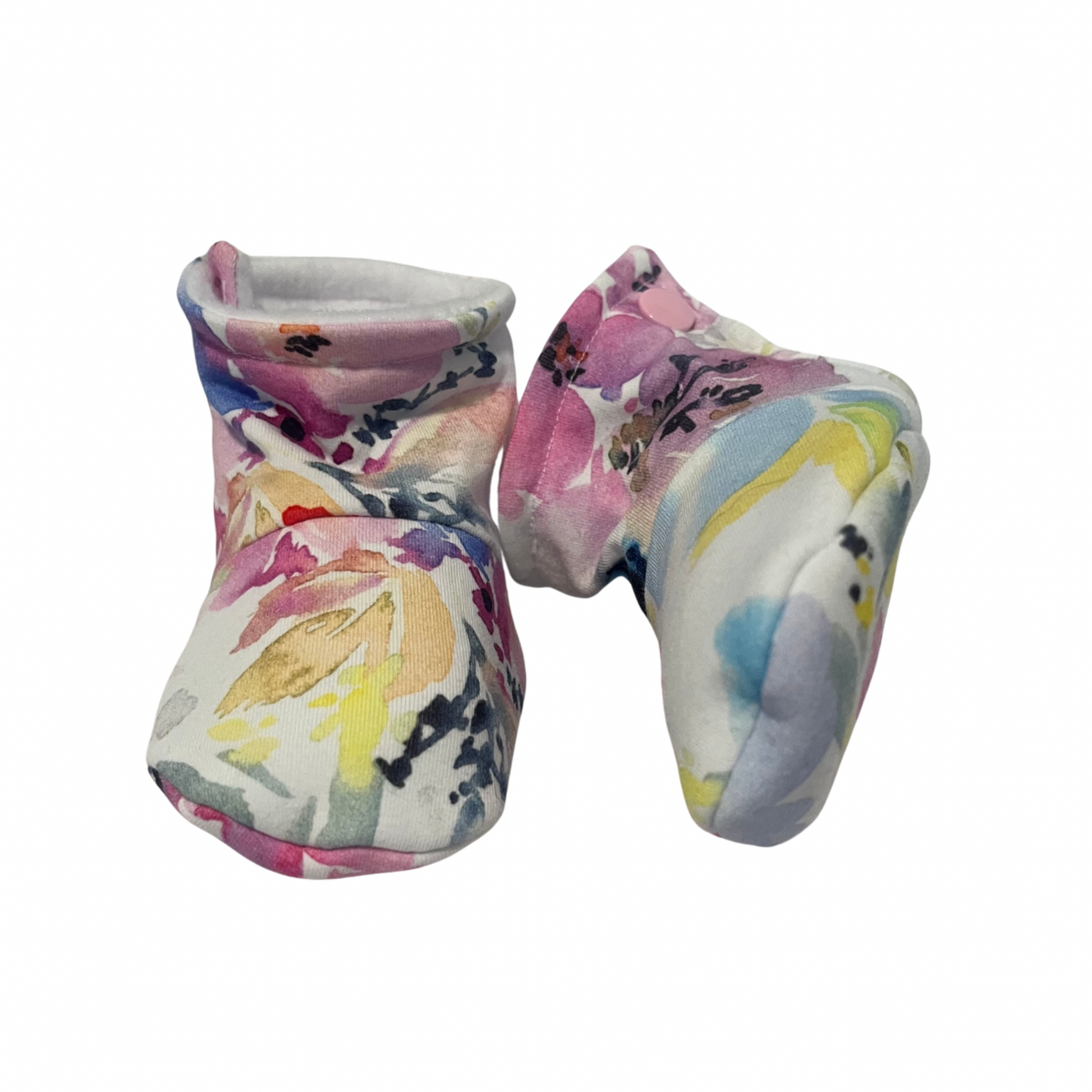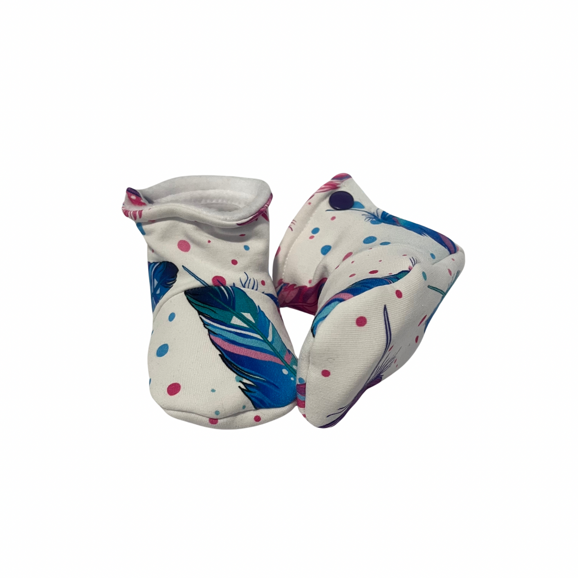Please note that due to the nature of the printing process, there may be slight variations in print layout and color from the image shown. But rest assured, each pair of booties is unique and made with care. Get your little one ready for the world with our adorable and practical booties.