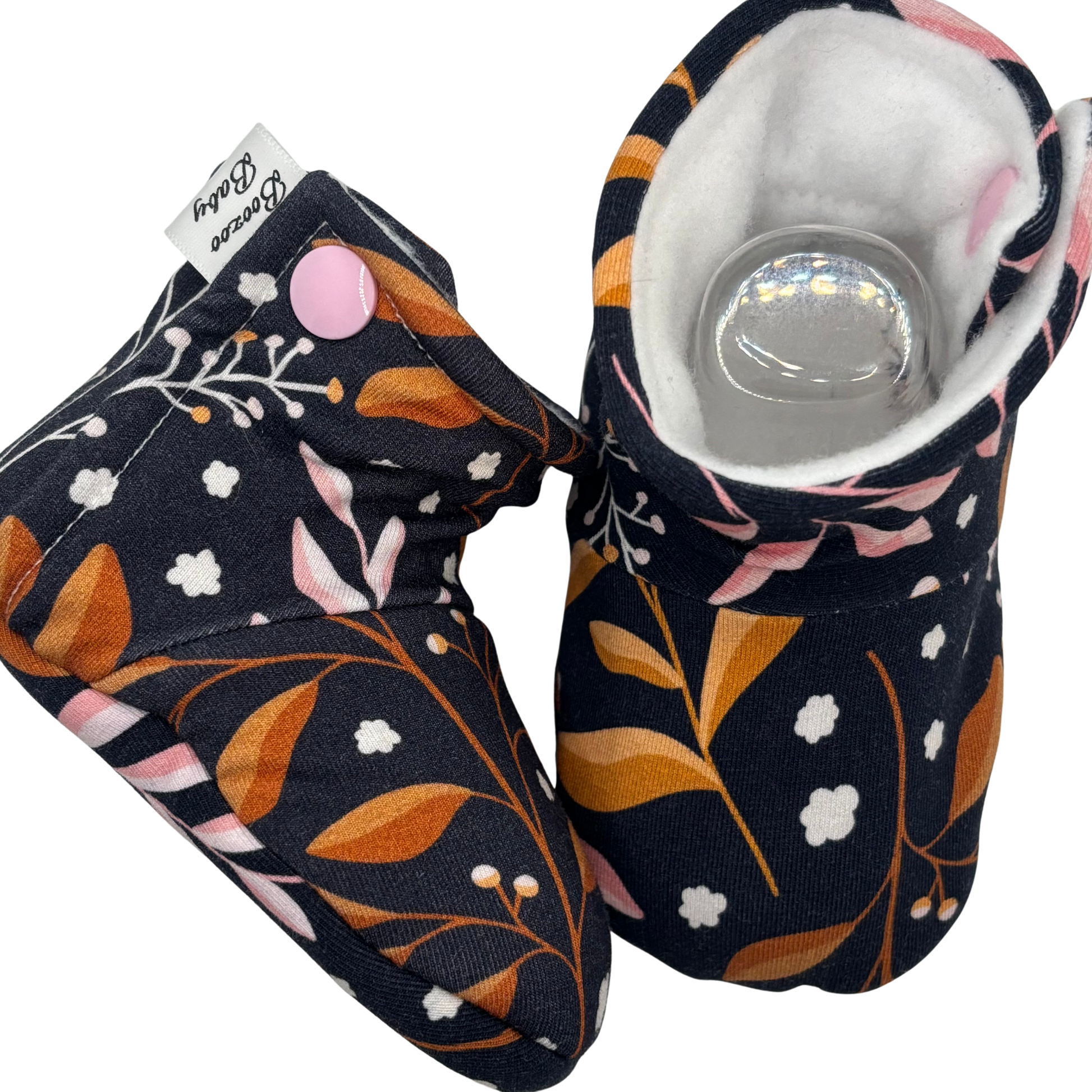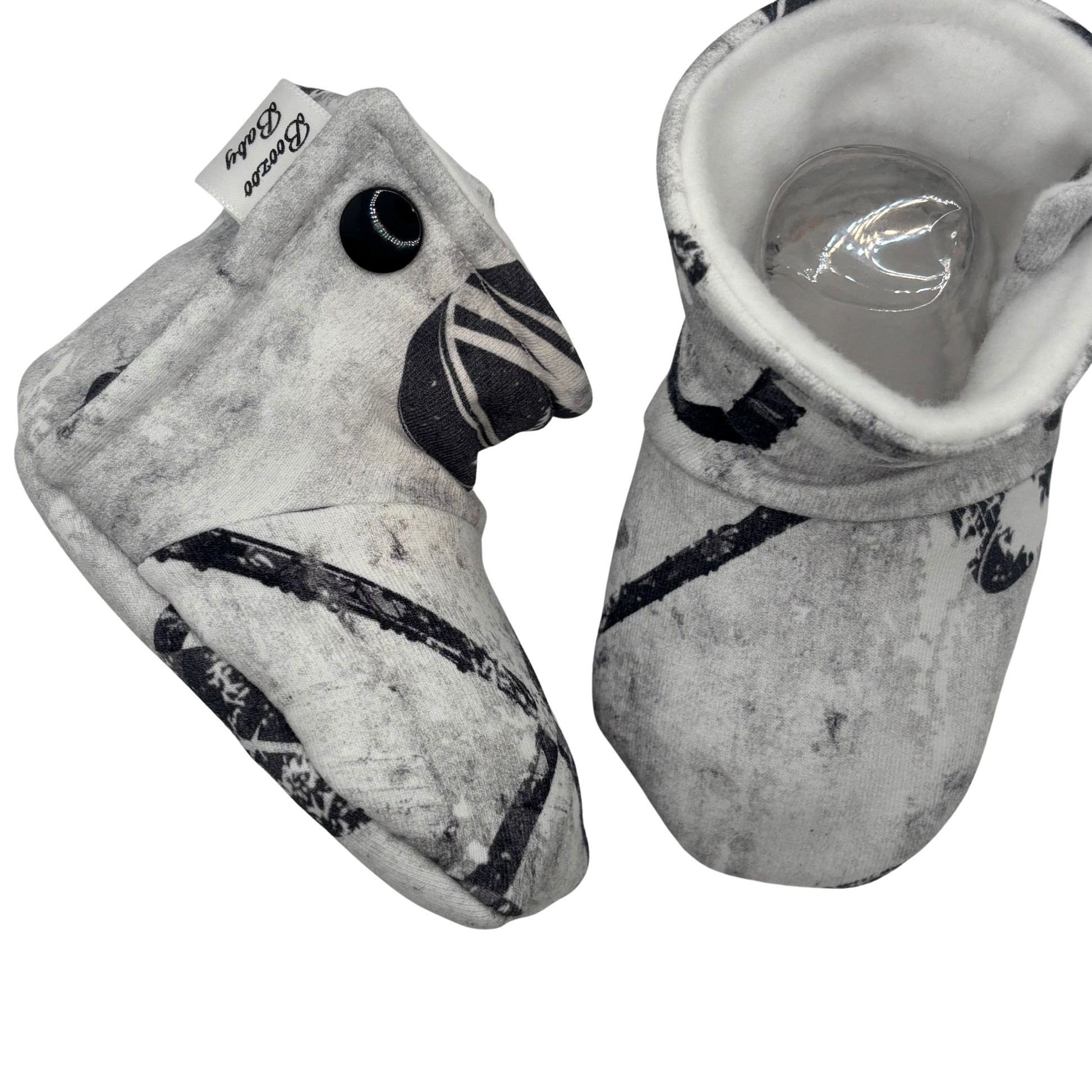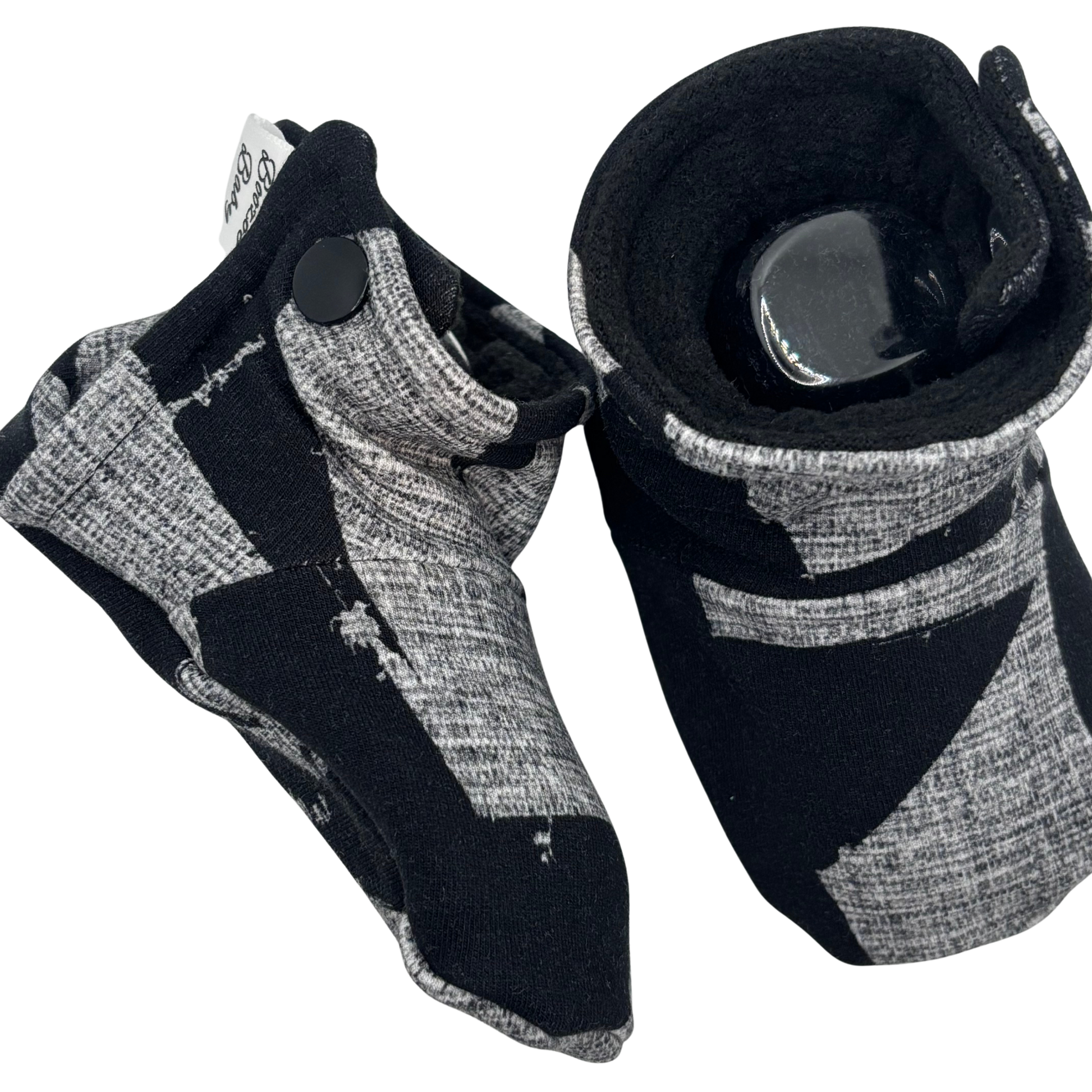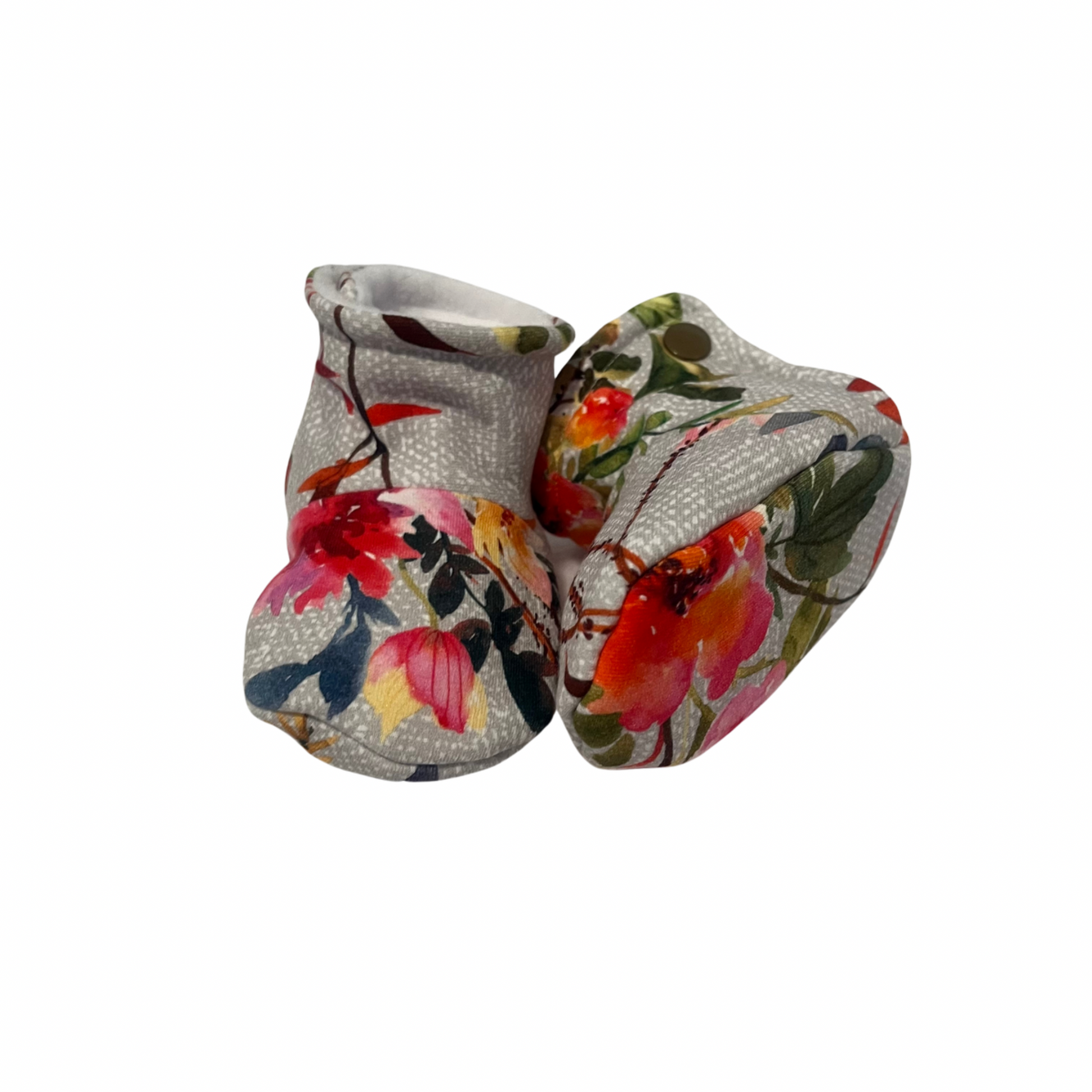 Please note that due to the nature of the printing process, there may be slight variations in print layout and color from the image shown. But rest assured, each pair of booties is unique and made with care. Get your little one ready for the world with our adorable and practical booties.