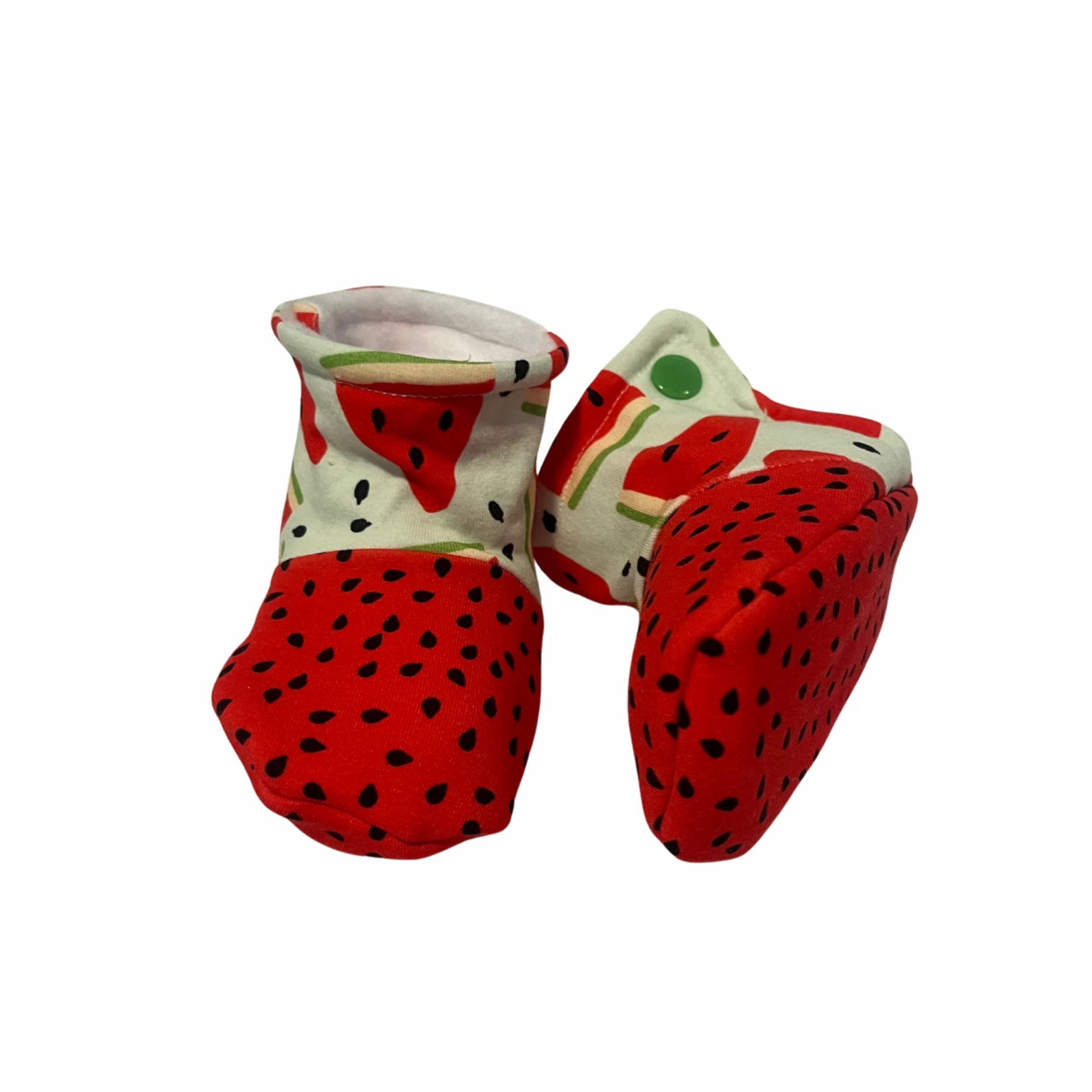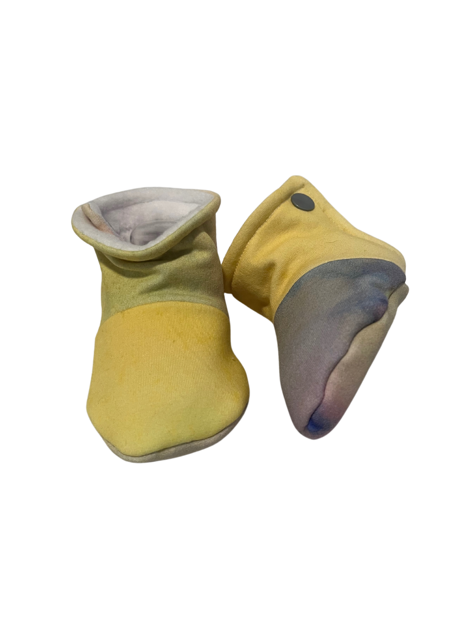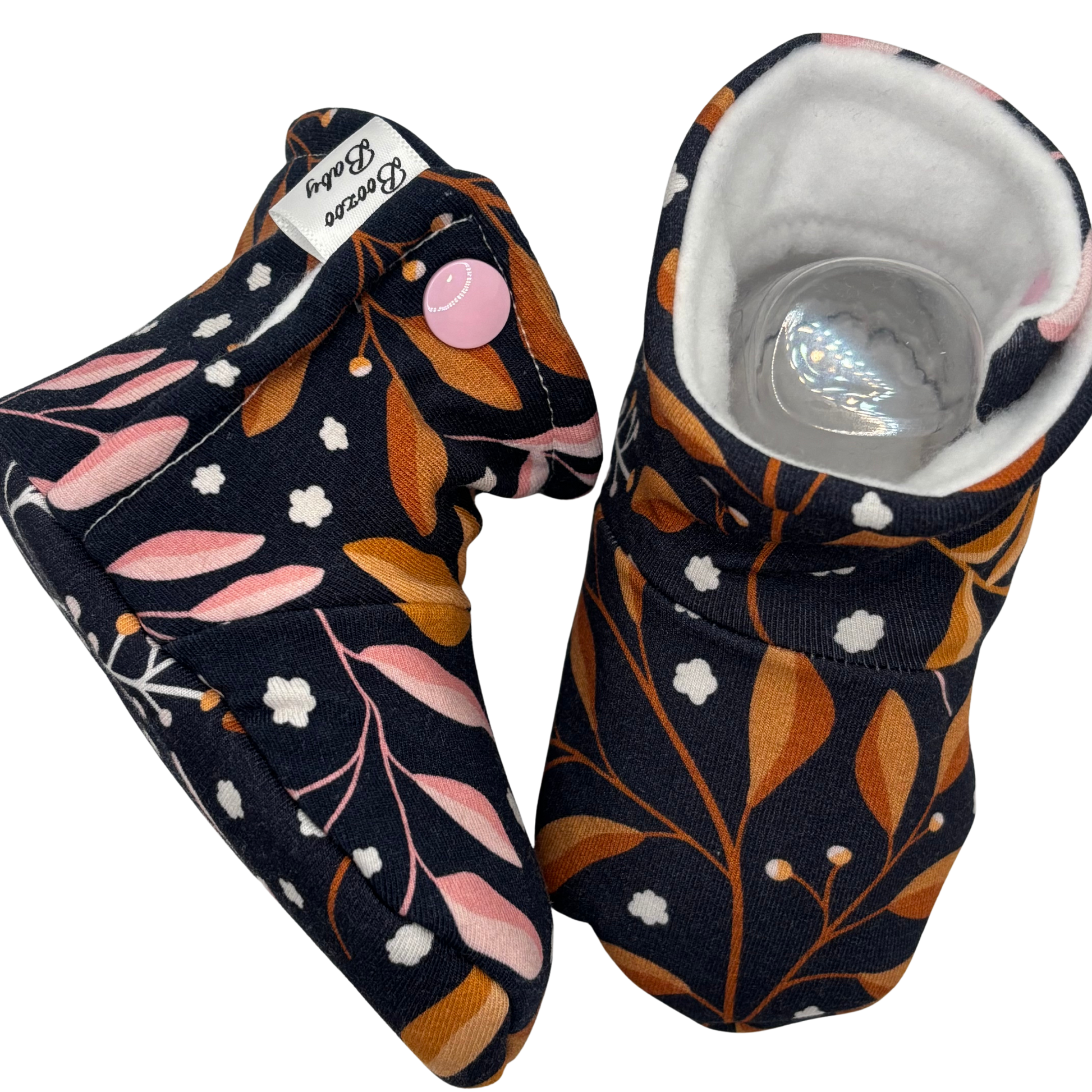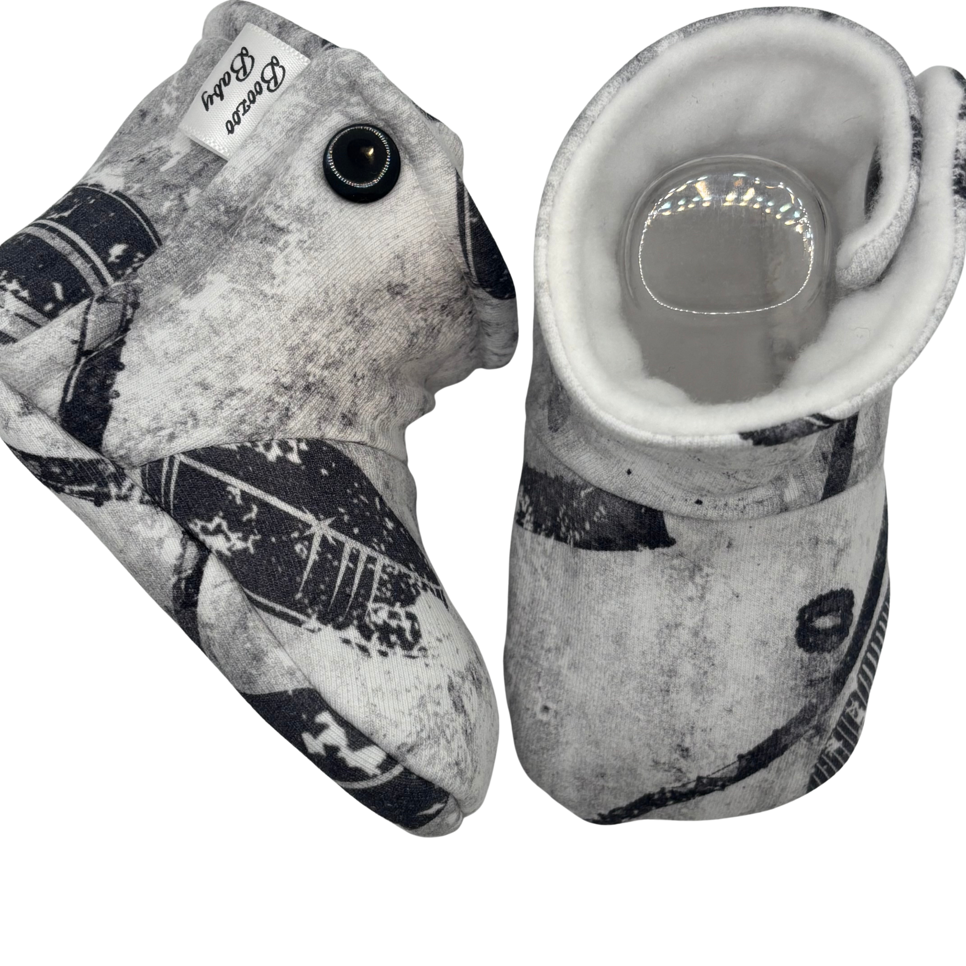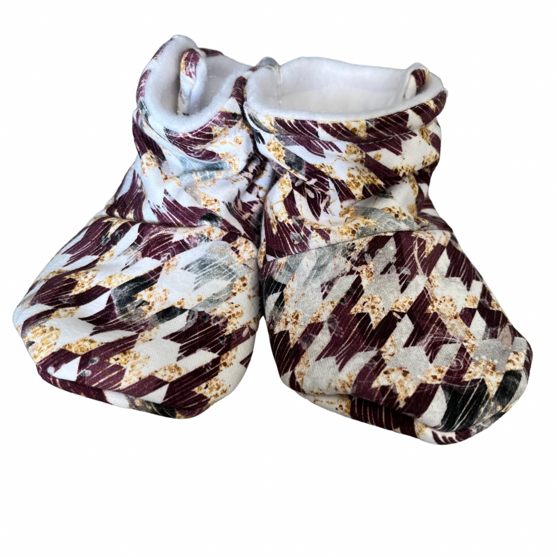 Please note that due to the nature of the printing process, there may be slight variations in print layout and color from the image shown. But rest assured, each pair of booties is unique and made with care. Get your little one ready for the world with our adorable and practical booties.