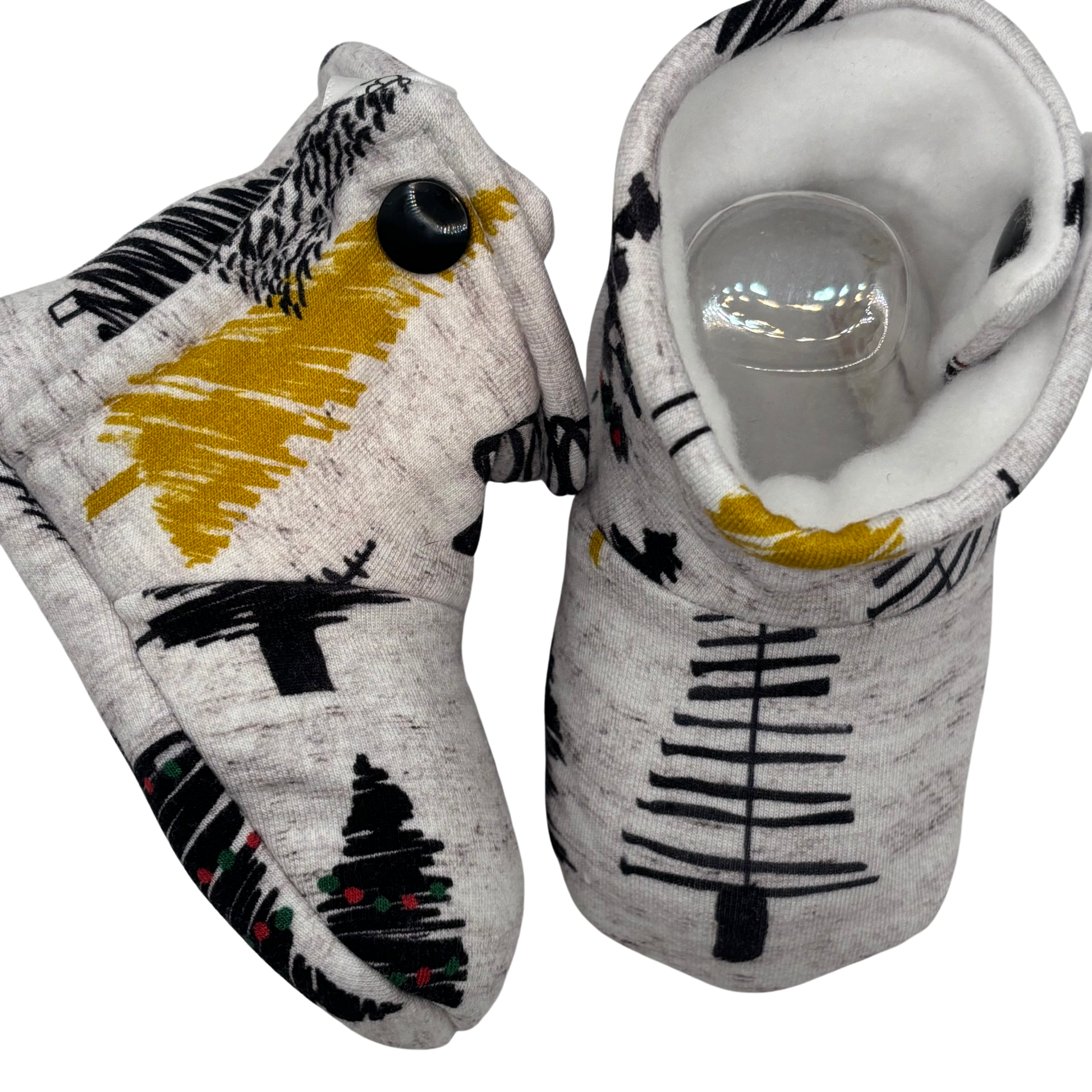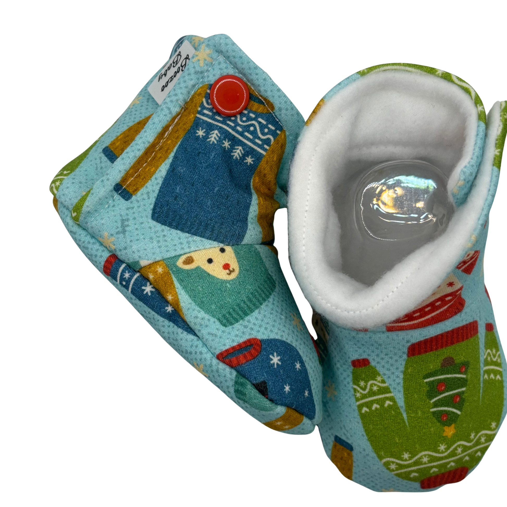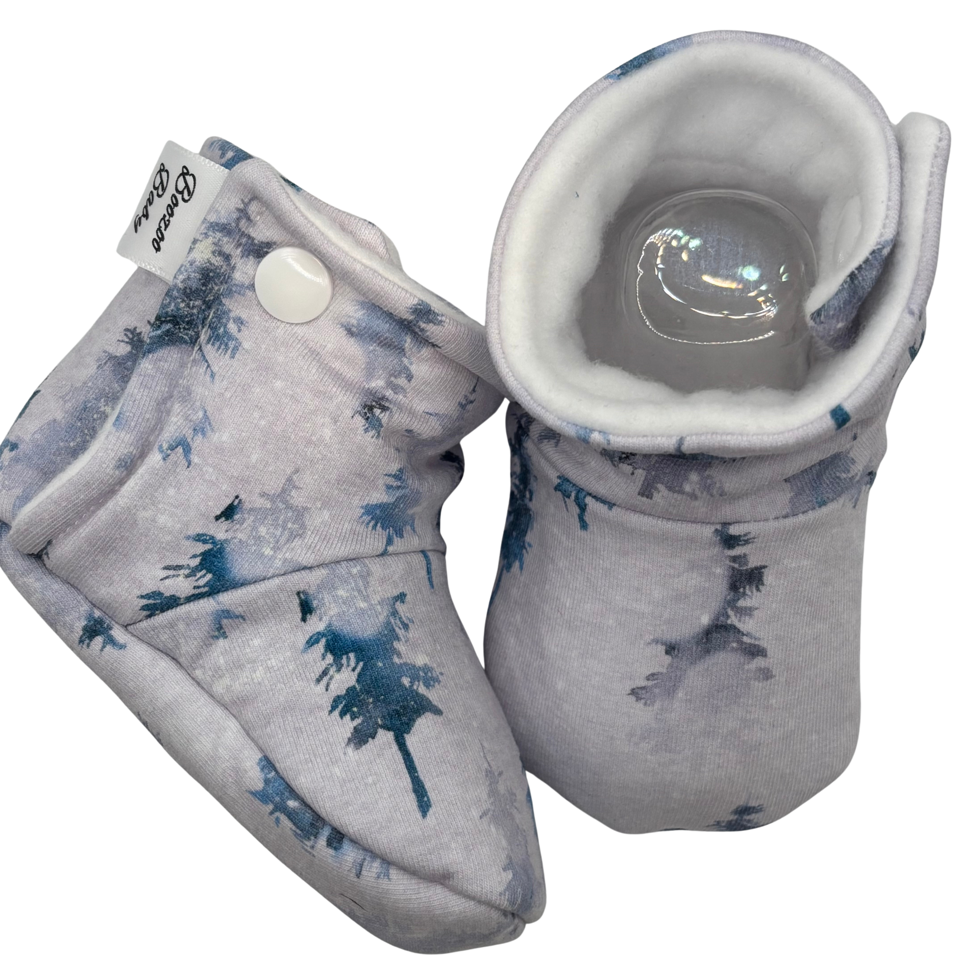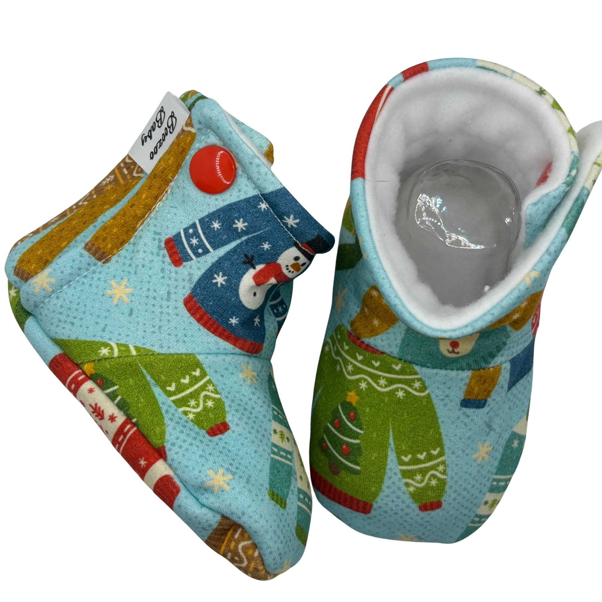 Please note that due to the nature of the printing process, there may be slight variations in print layout and color from the image shown. But rest assured, each pair of booties is unique and made with care. Get your little one ready for the world with our adorable and practical booties.