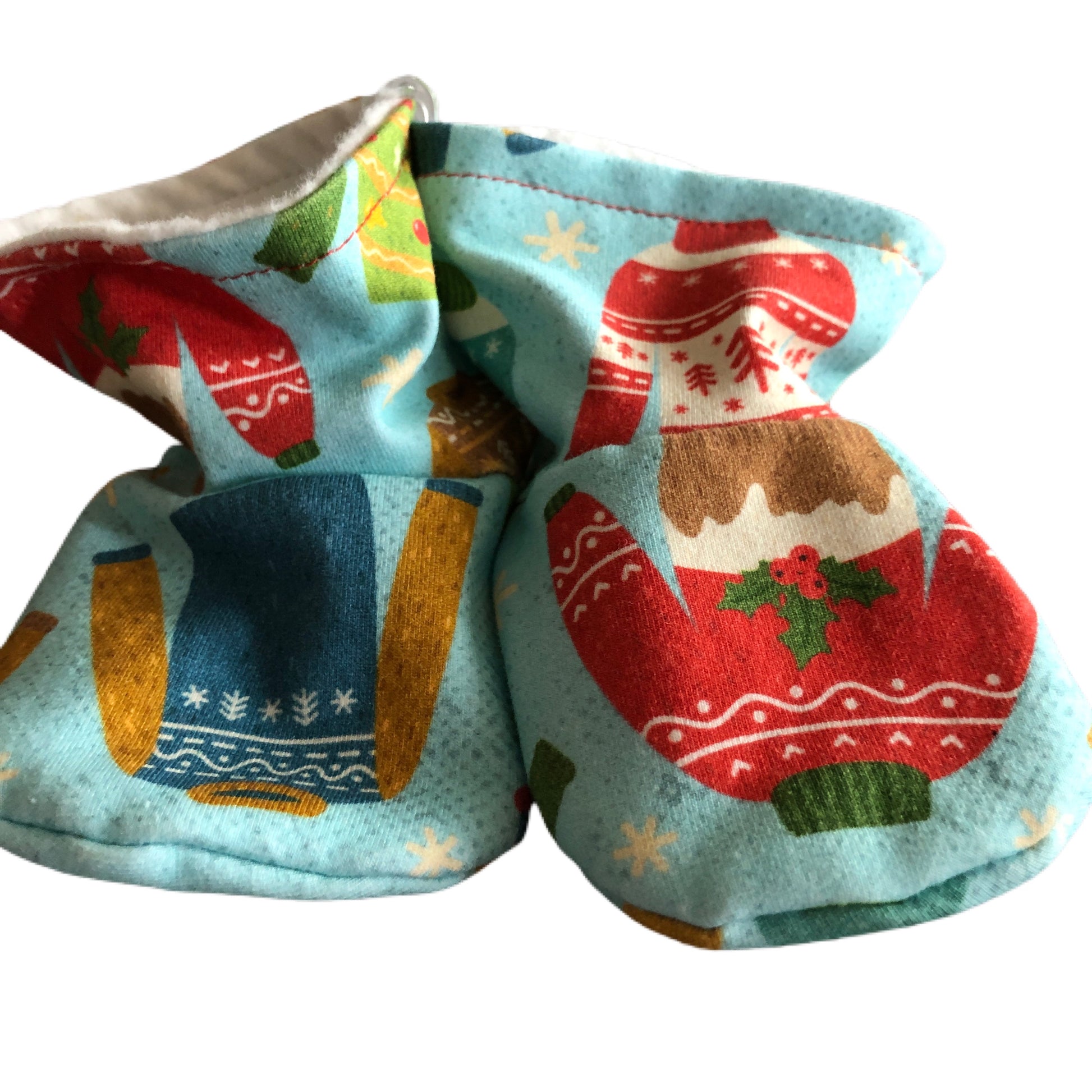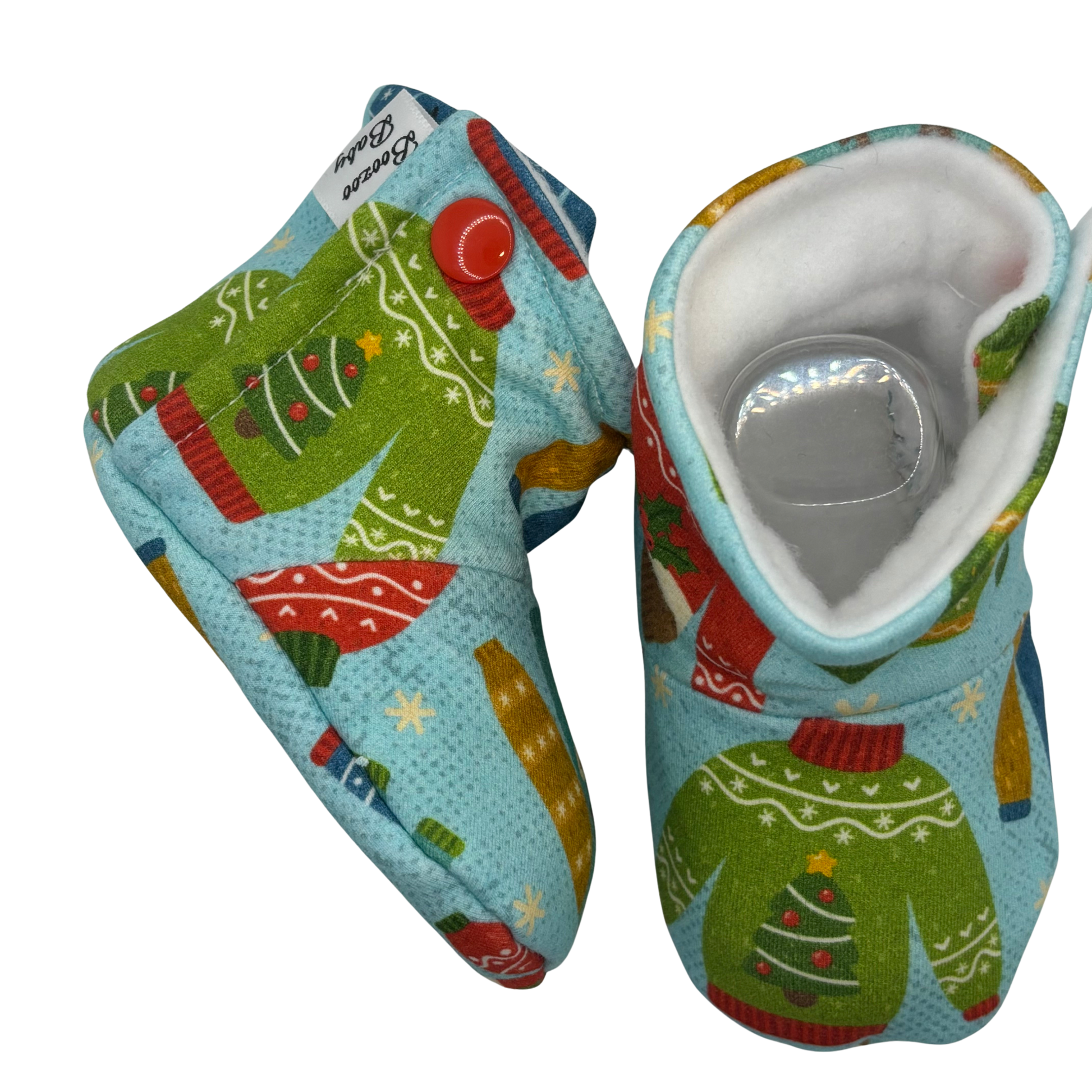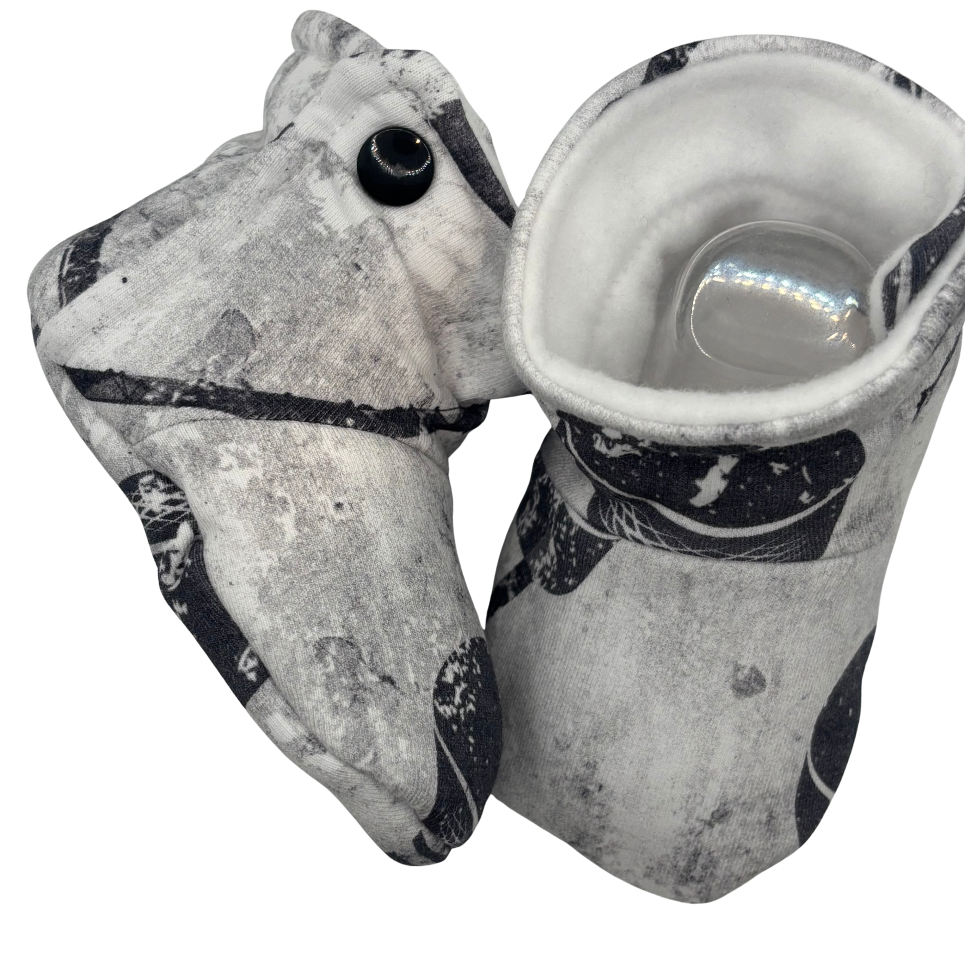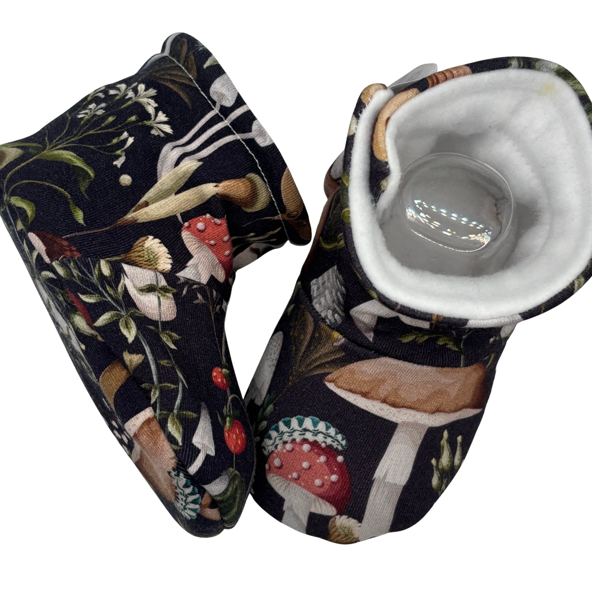 Please note that due to the nature of the printing process, there may be slight variations in print layout and color from the image shown. But rest assured, each pair of booties is unique and made with care. Get your little one ready for the world with our adorable and practical booties.