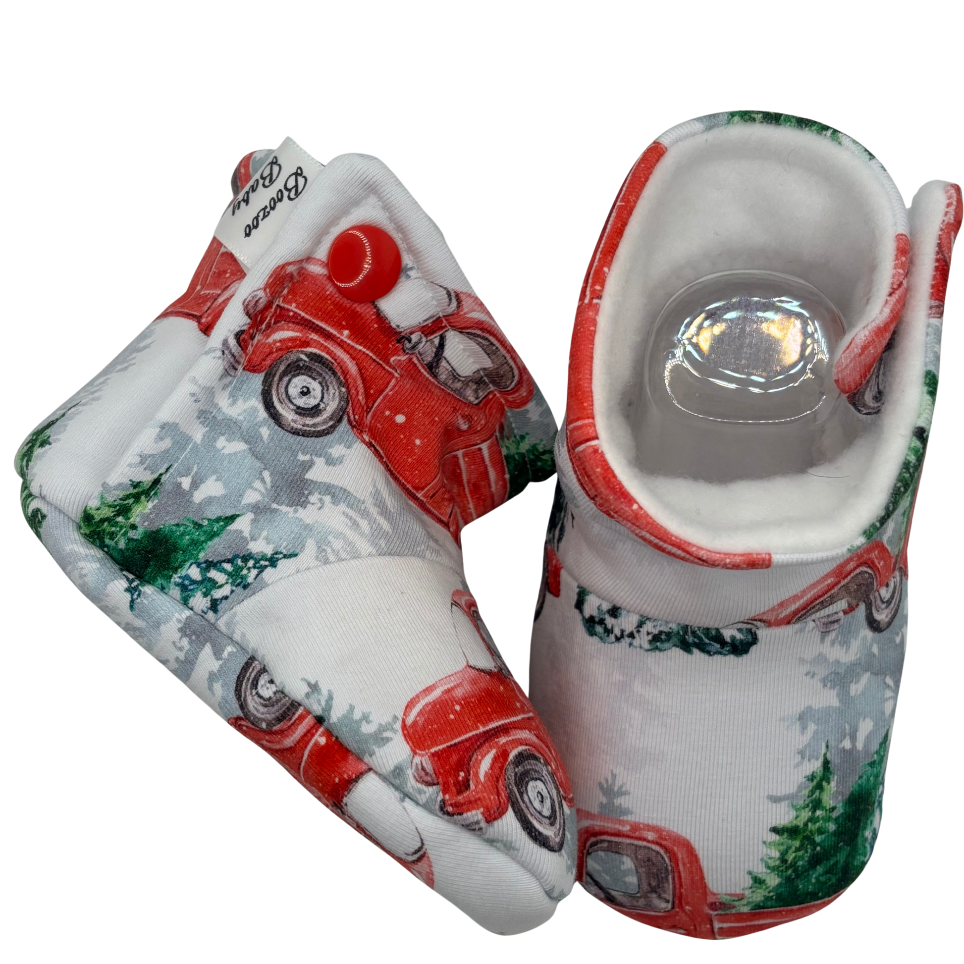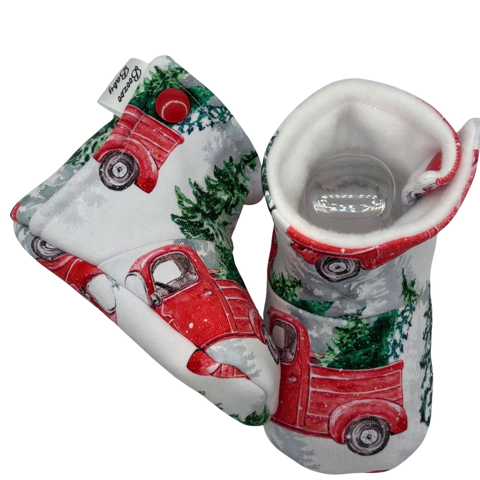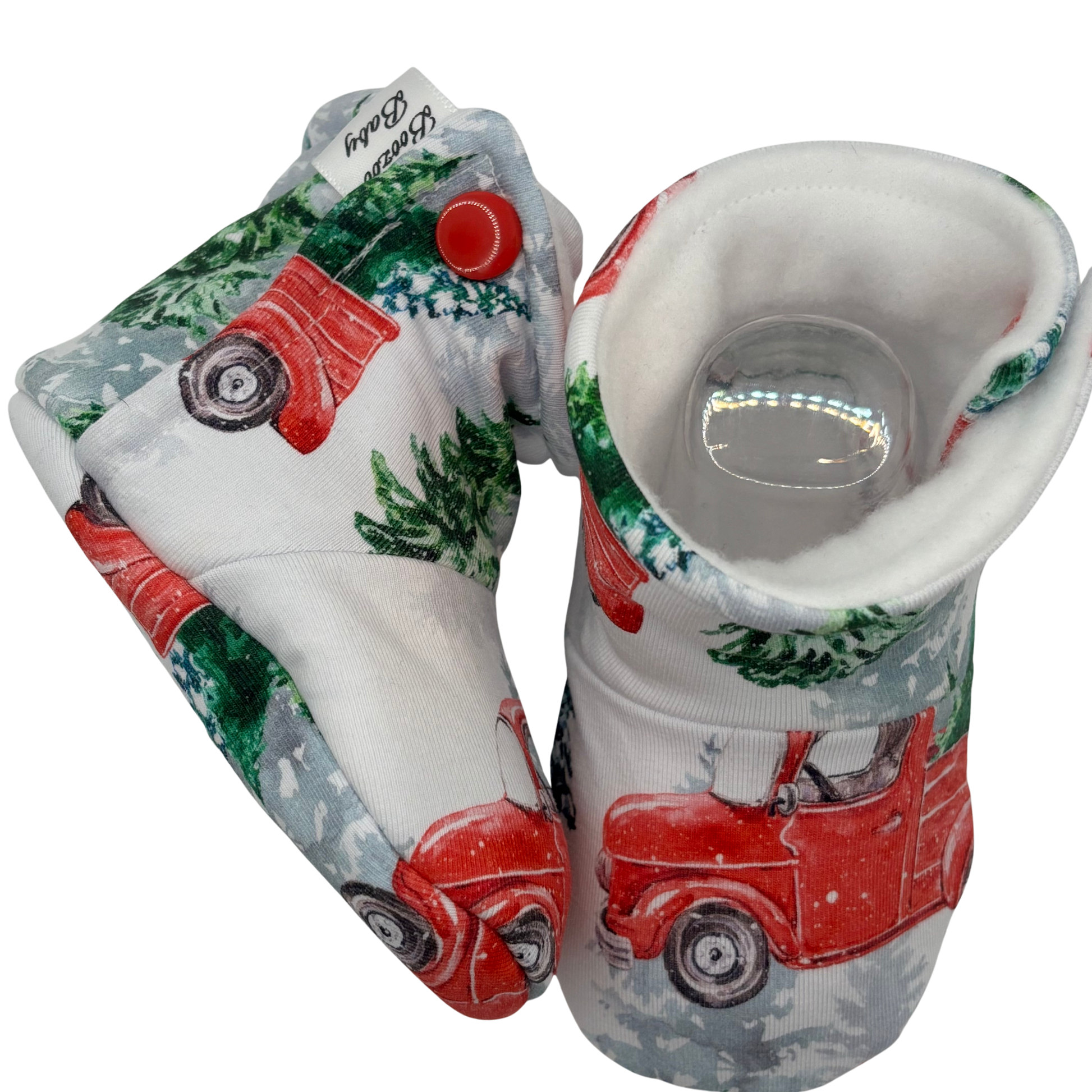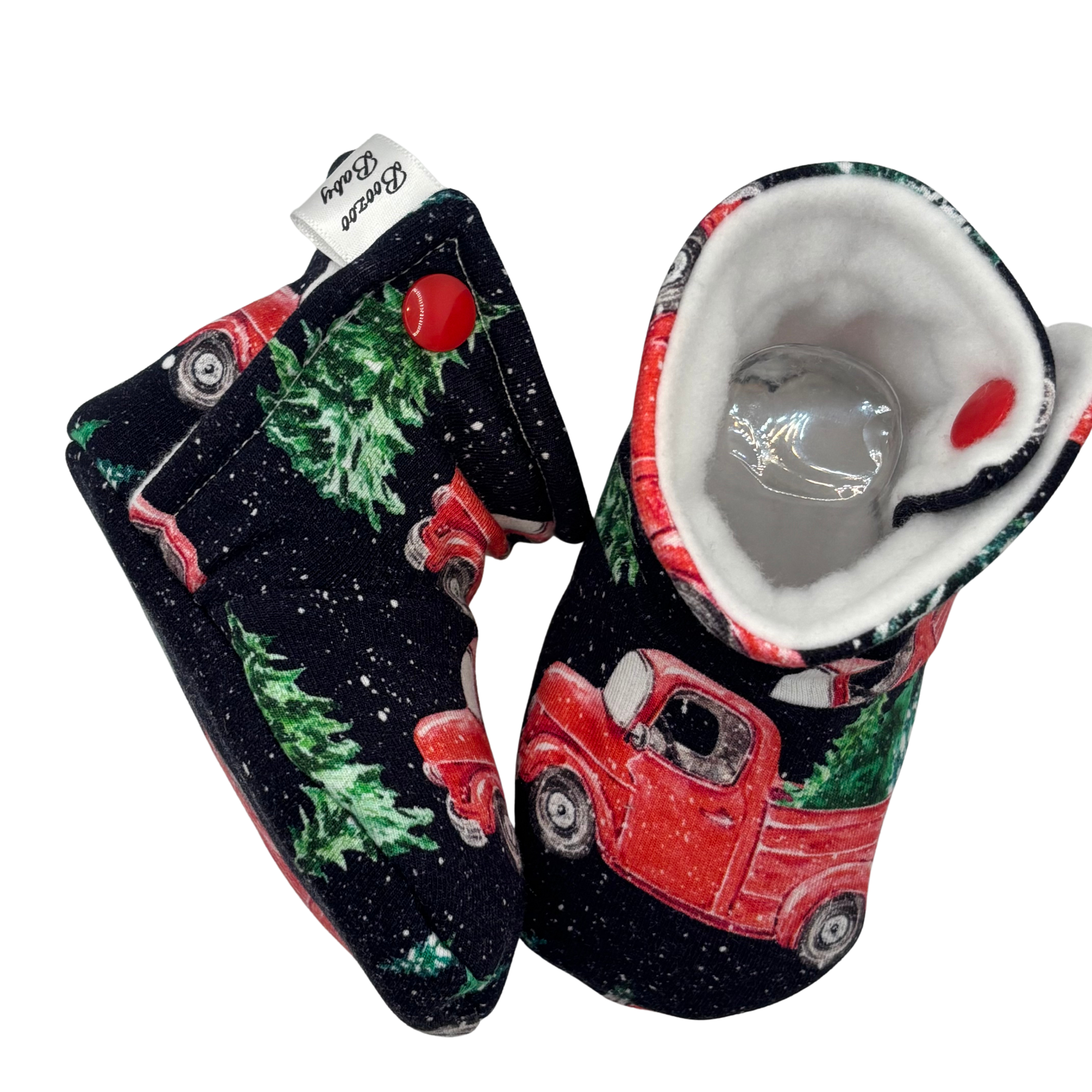Crafted with a high-quality blend of 95% cotton and 5% spandex on the outer layer, and lined with either 100% cotton flannel or 100% polyester fleece, these booties are soft, comfortable, and breathable. Plus, they come in a variety of colors and prints, adding a touch of fun and personality to your little one's wardrobe.