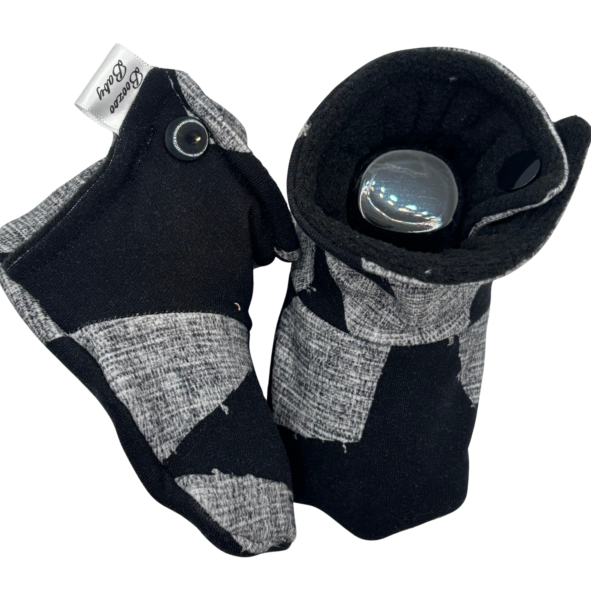 Our booties are specially designed to keep your little one's feet cozy and secure. Thanks to the built-in elastic, these booties stay on tiny feet and are harder for littles to kick off, providing you with peace of mind.